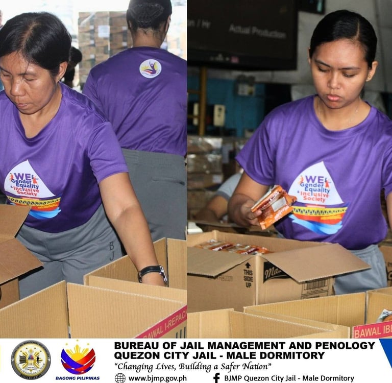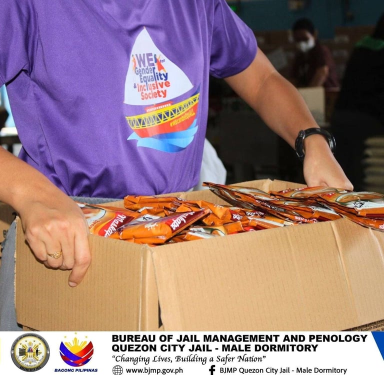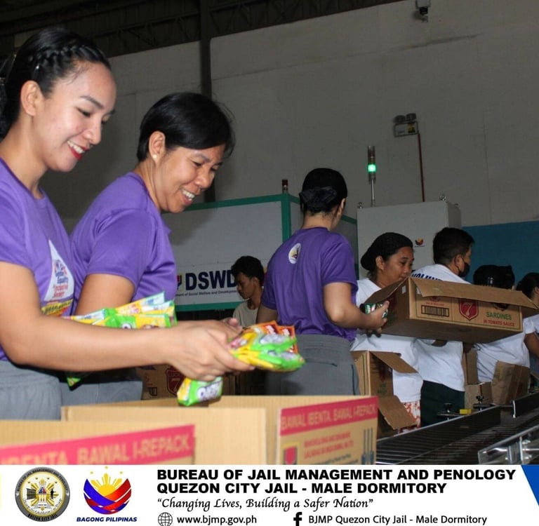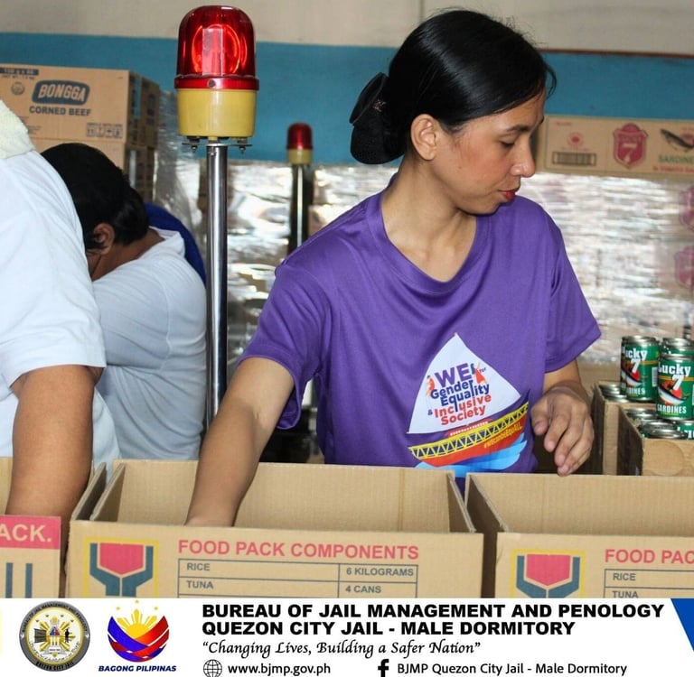 Female personnel of Quezon City Jail - Male Dormitory under the supervision of JSUPT MARIA LOURDES P PACION, RPh, City Jail Warden, extended their service beyond the jail facility, as they conducted relief - repacking assistance at the Department of Social Welfare and Development (DSWD) - Luzon Disaster Resource Center (LDRC), Pasay City, in celebration of National Womenโs Month 2026, with the theme "WE for Gender Equality and Inclusive Society."