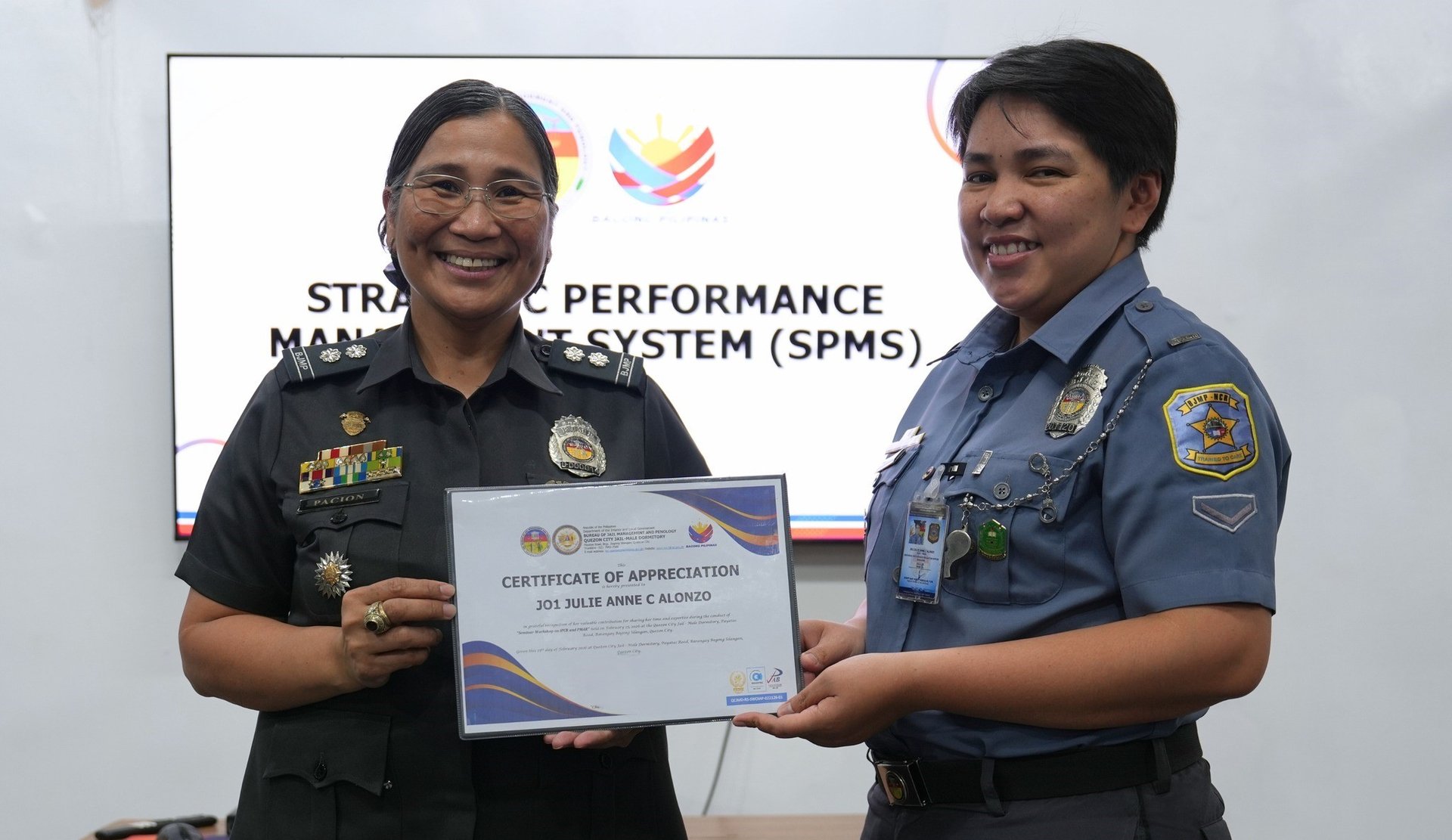 JSUPT MARIA LOURDES P PACION, RPh, City Jail Warden, presented the Certificate of Appreciation to JO1 Alonzo for sharing her expertise on the subject. JCINSP CHRISVIL O VILLAMOR, Chief HRMDU, was also present to oversee the activity.