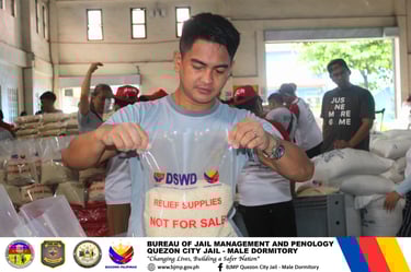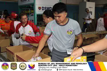 In line with the celebration of NATIONAL VOLUNTEERISM MONTH 2025, with the theme, "Volunteerism for Inclusive Development: Empowering Communities Toward a Just and Resilient Future," personnel of QUEZON CITY JAIL MALE DORMITORY actively participated in the DSWD RELIEF GOODS REPACKING ACTIVITY held at the LUZON DISASTER RESOURCE CENTER (LDRC), PASAY CITY.