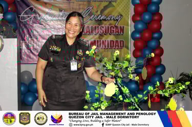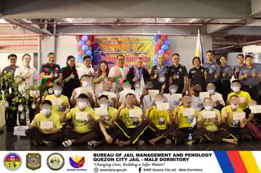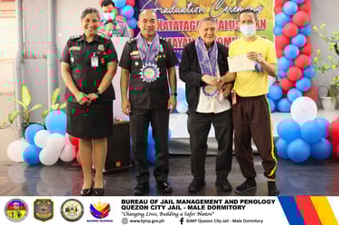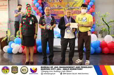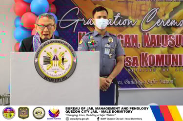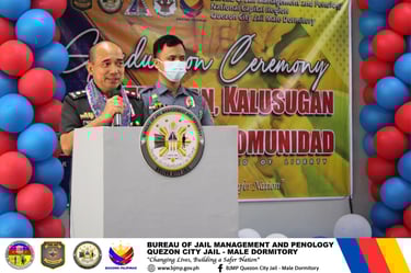 Inspirational messages were shared by JSUPT EMMANUEL A TOLENTINO, Assistant Regional Director for Operations, and Mr. Alfredo M Foronda, Executive Director, QCADAAC, underscoring the programโs vital role in successful community reintegration.