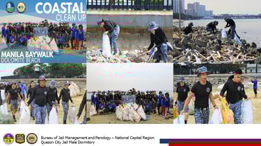In line with our commitment to environmental protection, the Quezon City Jail Male Dormitory conducted a Coastal Clean-Up at the Manila Baywalk Dolomite Beach, in coordination with the Department of Environment and Natural Resources (DENR) and with the support of the Manila Baywalk Environmental Volunteers.