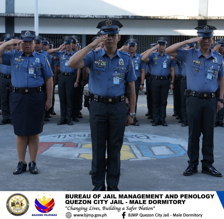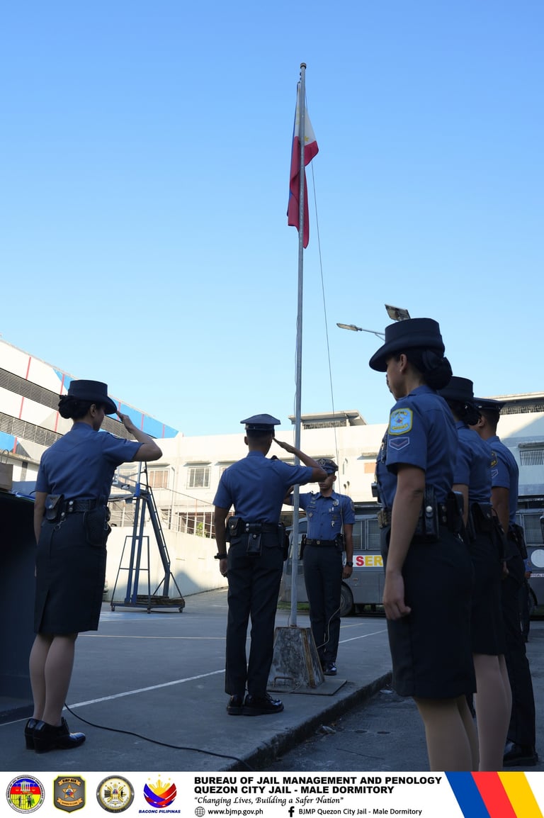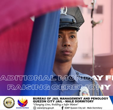 Under the leadership of City Jail Warden JSUPT MARIA LOURDES P PACION, RPh, Quezon City Jail-Male Dormitory held Traditional Monday Flag Raising Ceremony and Ranks Inspection this February 23, 2026.