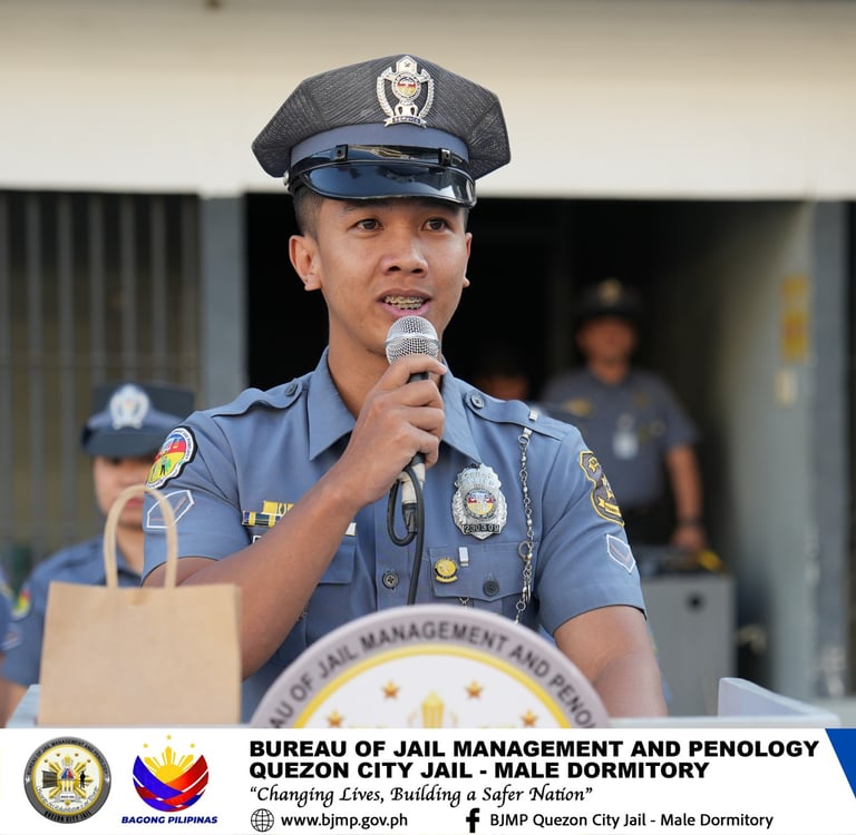 JO1 Samuel L Ananayo Jr delivered a powerful message during his Value Focused Discussion centered on Social Justice: "Under scrutiny of spectators, will they see strict implementation or unjust favors? The strength of the BJMP lies not only in security but also in our character while enforcing it. Be Firm in Action. Fair in Authority. Disciplined in Conduct."