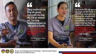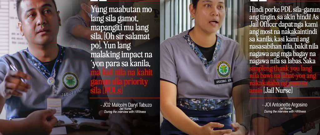 "Yung maabutan mo lang sila gamot, mapangiti mu lang sila, [Oh sir salamat po]. Yun lang malaking impact na ‘yon para sa kanila, ma feel nila na kahit ganun sila priority sila [PDLs]" - JO2 Malcolm Daryl Tabuzo