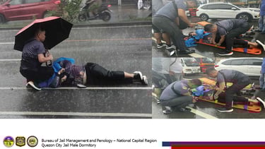 Despite the heavy rainfall at the time of the incident, JO1 ABDUL ANSAROLA, a Jail Nurse from QCJMD, immediately responded to the accident who happened to be in the area. Without hesitation, he provided first aid to the injured man and quickly called for an ambulance, ensuring the victim’s immediate transfer to the nearest hospital for further medical attention.