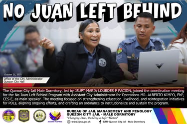 JSUPT MARIA LOURDES P PACION, City Jail Warden, attended the Coordination Meeting for the No Juan Left Behind Program, spearheaded by MR. ALBERTO KIMPO, EhP, CES-E, Assistant City Administrator for Operations, as the main speaker.