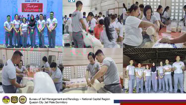 Personnel from the Quezon City Jail - Male Dormitory (QCJMD) recently volunteered at the Department of Social Welfare and Development - National Resource Operations Center (DSWD-NROC) in Barangay 195, Pasay City to assist in repacking relief goods.