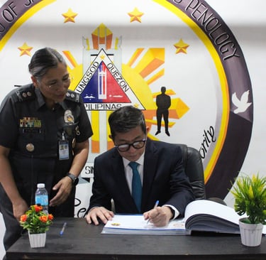 The visit concluded with Justice MIRANDA signing the QCJMD Guest Book, leaving a message congratulating QCJMD for an impressive new city jail and encouraging the continued transformation of lives in need of help, capped with a heartfelt ๐๐ข๐ ๐๐๐๐ฆ๐ฆ.