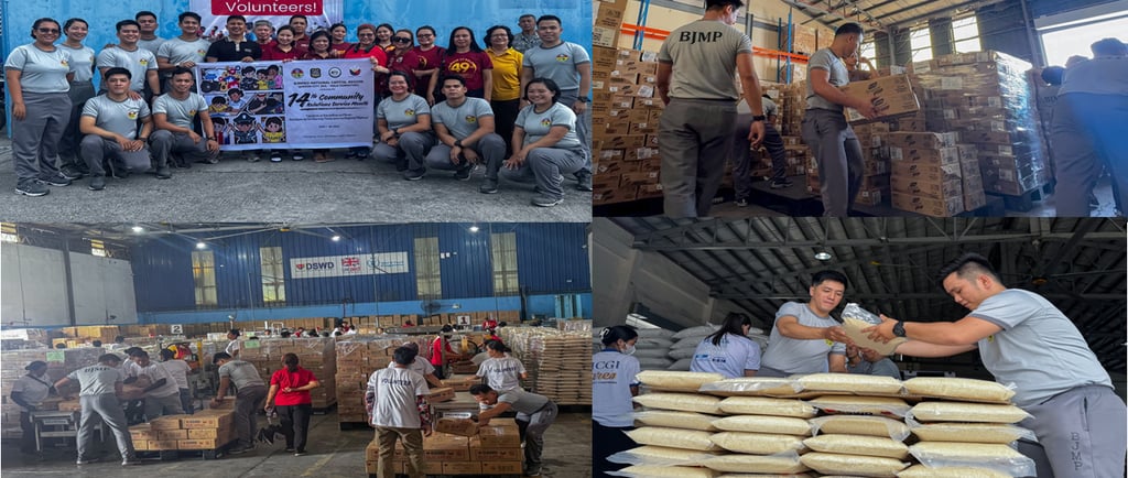 In continued celebration of the 14th Community Relations Service Month and the spirit of bayanihan, the Quezon City Jail – Male Dormitory (QCJMD) recently volunteered at the Department of Social Welfare and Development – National Resource Operations Center (DSWD-NROC) in Barangay 195, Pasay City, to assist in repacking relief goods last June 13, 2025.