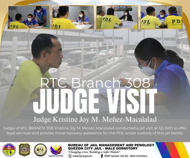 ๐๐๐ ๐๐ซ๐๐ง๐๐ก ๐๐๐, ๐๐๐ ๐๐ฅ ๐๐ข๐ ๐๐จ๐ซ ๐๐๐๐ฌ | Judge of RTC BRANCH 308, Kristine Joy M. Menez-Macalalad along with Atty. Janine Danica Joya and personnel from RTC Branch 308 conducted a jail visit at QCJMD offering legal services and provide moral recovery assistance for the PDL under custody of this jail facility.