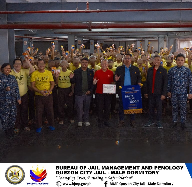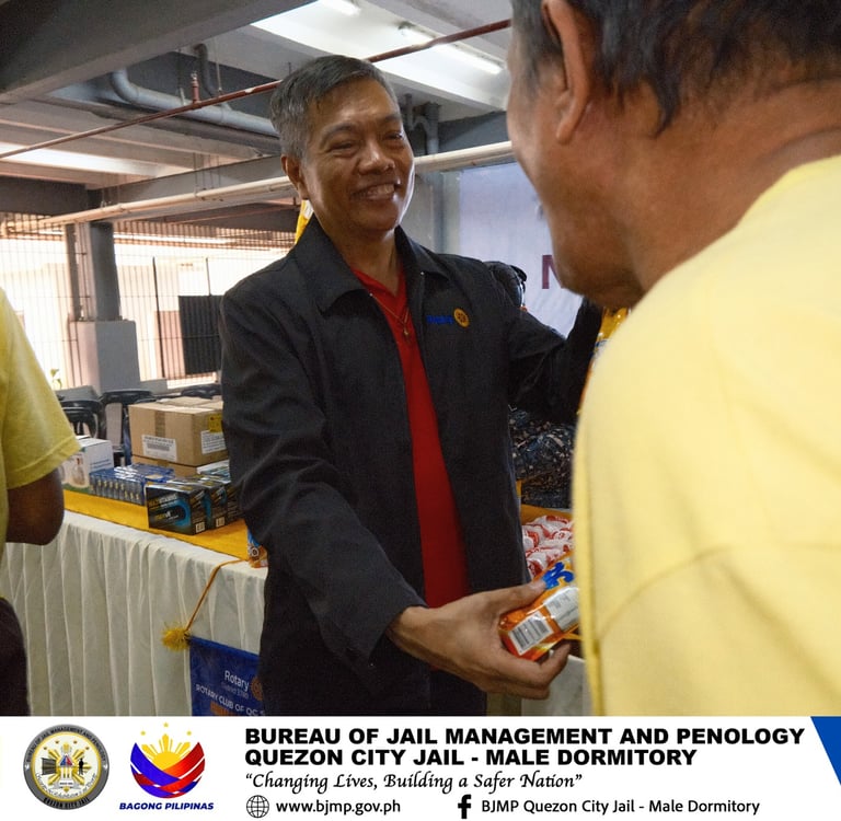 The Rotary Club of Quezon City Southwest, led by Club President RONALD PAUL SALES, together with Club Secretary RONALDO FRIAS, Rotarian GEORGE BELANDRES, and Rotarian HOWARD DIZON, conducted a meaningful feeding program for the Senior Citizen PDL of the Quezon City JailโMale Dormitory.