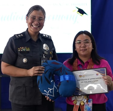 During his inspirational message, BJMPRO-NCR Regional Director JCSUPT BABY NOEL P MONTALVO, TLPE, extended his heartfelt gratitude to TESDA and TechVoc Skills Inc. for their unwavering support in sharing their expertise for the benefit the PDL. He also thanked the families of the PDL, some of whom were in attendance, for their steadfast support and encouragement, reminding the graduates to be grateful to their loved ones who never gave up on them.