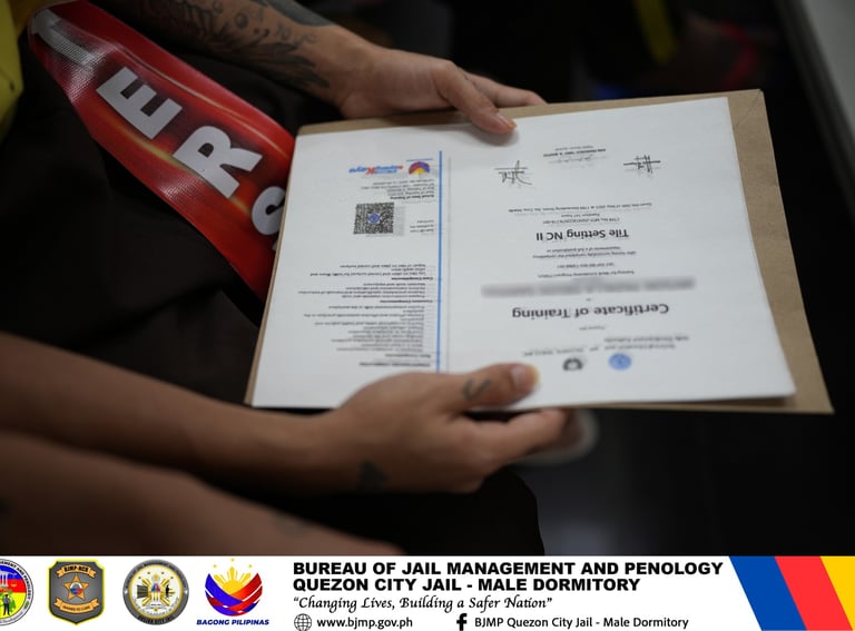 On January 28, 2026, more than 80 Persons Deprived of Liberty of Quezon City Jail-Male Dormitory successfully completed the TESDA Tile Setting Training-NC II during the conduct of a Graduation Ceremony with the theme "Building Skills, Restoring Hope, Shaping New Beginnings."
