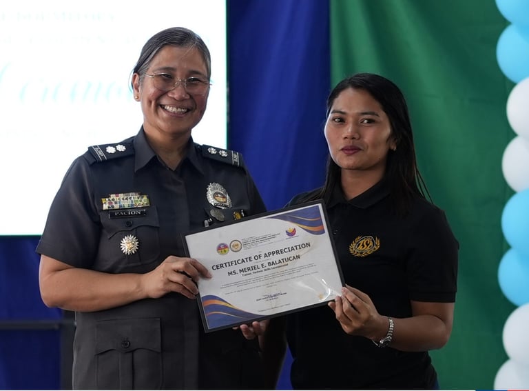 On behalf of TESDA District Director Mr PAUL JOHN RAMOS, Christalin Rose G. Gabagat, TESDA Specialist I, shared words of encouragement with the graduates, emphasizing that each tile they placed during the training symbolizes a challenge overcome. Completing the program under circumstances such as theirs demonstrates resilience and equips them with valuable skills for life upon release.