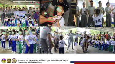 Nagsagawa ang mga personnel ng Quezon City Jail Male Dormitory ng isang Feeding Program at Read-a-Book Activity para sa mga bata ng Dela Costa Child Development Center sa Rodriguez, Rizal.