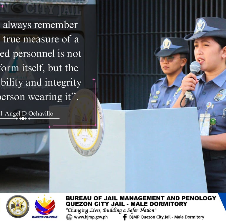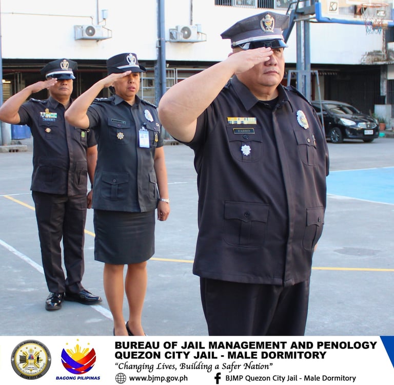 The Quezon City Jail-Male Dormitory, under the leadership of ๐๐๐๐๐ ๐๐๐๐๐ ๐๐๐๐๐๐๐ ๐ ๐๐๐๐๐๐,๐๐๐ก, City Jail Warden, conducted its traditional flag raising ceremony as part of its regular monday observance, reaffirming the personnelโs commitment to discipline and public service.