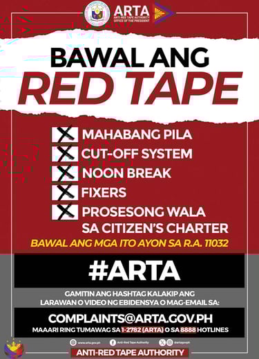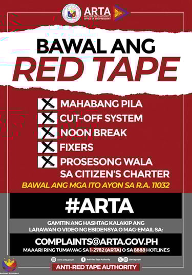 The Anti-Red Tape Authority (ARTA) is guided by the principles of transparency, respect and proactive protection of personal information of our employees, co-workers in government, service providers, clients and other stakeholders in accordance with the requirements of RA 10173 or Data Privacy Act of 2012 and its Implementing Rules and Regulations including the Circulars and Advisories issued by the National Privacy Commission (NPC).